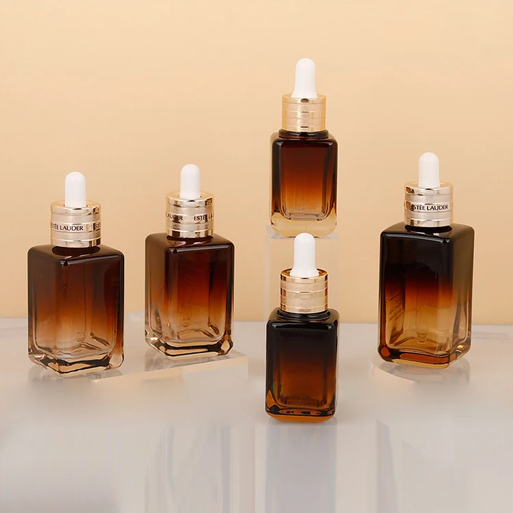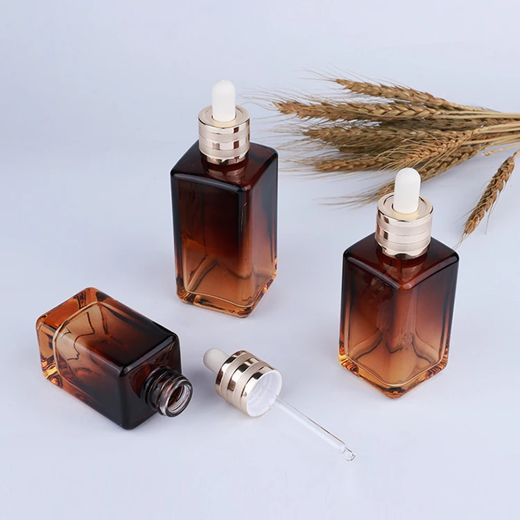 100ml 75ml 50ml 30ml 1OZ Amber Colored Square Glass Dropper Bottles for Hair Oil Body Oil and Serum for Eye Drops
